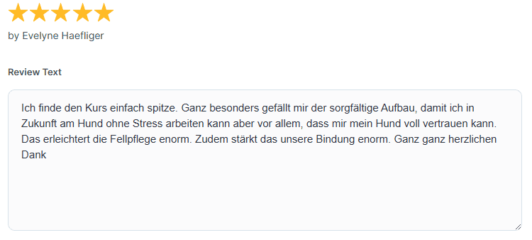 Der Kurs ist für Ersthundehalter sehr zu empfehlen, in Bezug auf Beziehung + Erziehung.”Rückmeldung direkt auf die Fellness & PfotenProfi Challenge